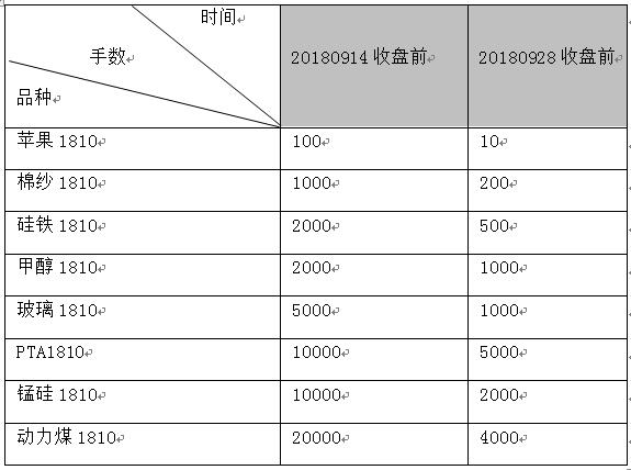 根據(jù)各交易所限倉規(guī)定,大商所、鄭商所自然人客戶1810合約持倉不允許進入交割月,上期所自然人客戶1810合約持倉符合整數(shù)倍要求可進入交割月?,F(xiàn)將1810合約限倉提示如下: