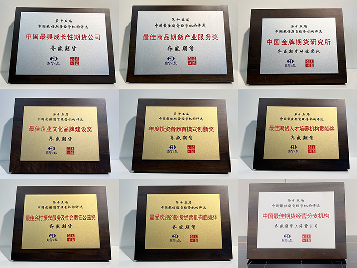近日,由《證券時報》、《期貨日報》聯(lián)合主辦的“第十五屆中國最佳期貨經(jīng)營機構(gòu)暨最佳期貨分析師評選”活動中,山東齊盛期貨有限公司榮獲“中國最具成長性期貨公司”、“最佳商品期貨產(chǎn)業(yè)服務獎”、“中國金牌期貨研究所”、“最佳鄉(xiāng)村振興服務及社會責任公益獎”等九項期貨機構(gòu)綜合獎和十二項個人分析師獎項。 據(jù)悉,"中國最佳期貨經(jīng)營機構(gòu)暨最佳期貨分析師評選活動"已成功舉辦了十五屆,是國內(nèi)設立最早、期貨行業(yè)中最具權(quán)威和影響力的評選活動。