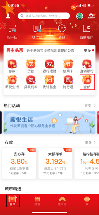 登錄手機(jī)銀行,點(diǎn)擊左下角“首頁-全部”。