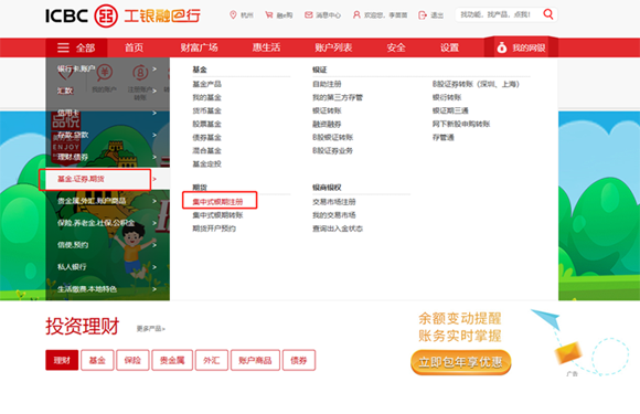 選擇“基金-證券-期貨”-“集中式銀期注冊”。